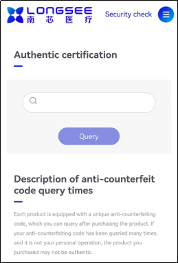 后续南芯医疗防疫产品都会启用一物一码防伪系统,建立完善的产品管理体系,帮助快速识别产品真伪,维护广大消费者的合法权益。