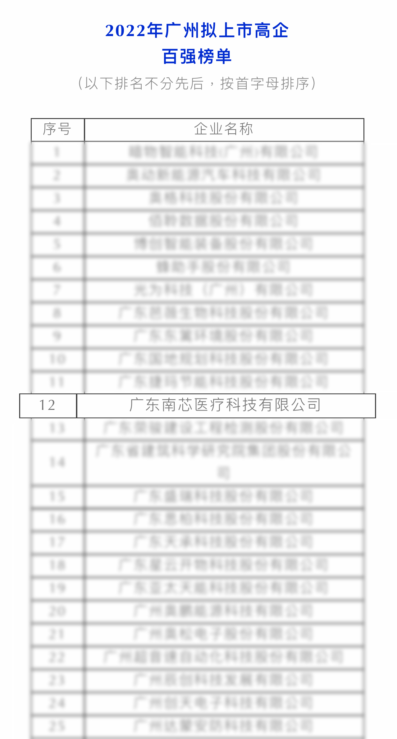 9月27日“2022年广州拟上市高企百强榜单”发布会成功举办,广东南芯医疗科技有限公司,从全市12000多家高企中脱颖而出荣登“拟上市高企百强榜单”。此次上榜,对我司来说是一份肯定,是一份使命,更是一份责任。